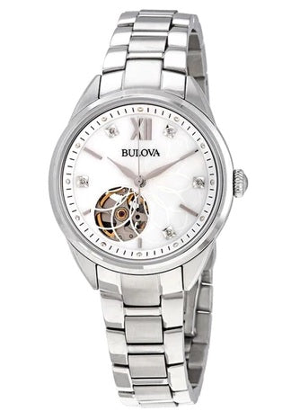 Bulova Automatic Diamond Silver Dial Stainless Steel Ladies Watch