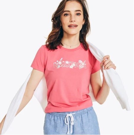 Camiseta Nautica Logo Floral Rosa
