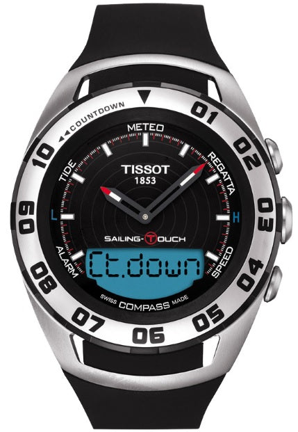 Caja de acero inoxidable con correa de caucho negro. Bisel fijo de PVD negro con un anillo superior plateado que muestra marcadores de cuenta regresiva. Esfera analógica digital negra con manecillas luminosas y marcadores de índice de hora. Funciones y marcadores de minutos alrededor del borde exterior. Tipo de esfera: Analógico-digital. Agujas y rotuladores luminiscentes. Calendario perpetuo. Calendario perpetuo digital. Movimiento de cuarzo calibre ETA E48.331. Cristal de zafiro táctil resistente a los arañazos. Corona atornillada. Parte trasera sólida. Forma de caja redonda. Tamaño de la caja: 45 mm. Grosor de la caja: 13,5 mm. Ancho de banda: 20 mm. Cierre plegable con botón de liberación. Resistente al agua a 100 metros / 330 pies.