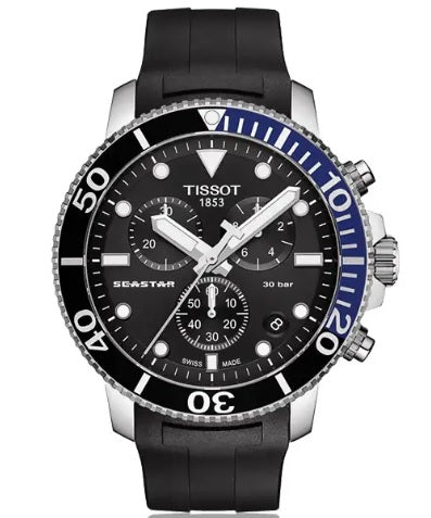 TISSOT Seastar 1000 Chronograph Quartz Black Dial Batman Bezel Men's Watch